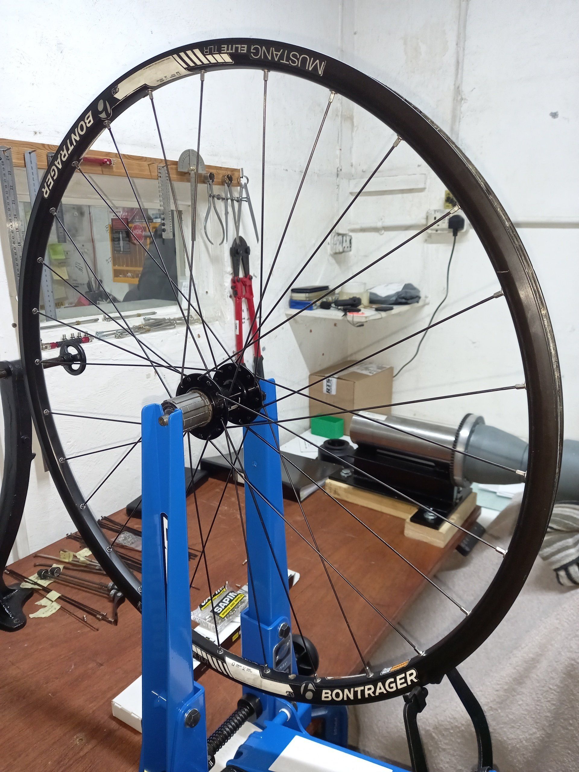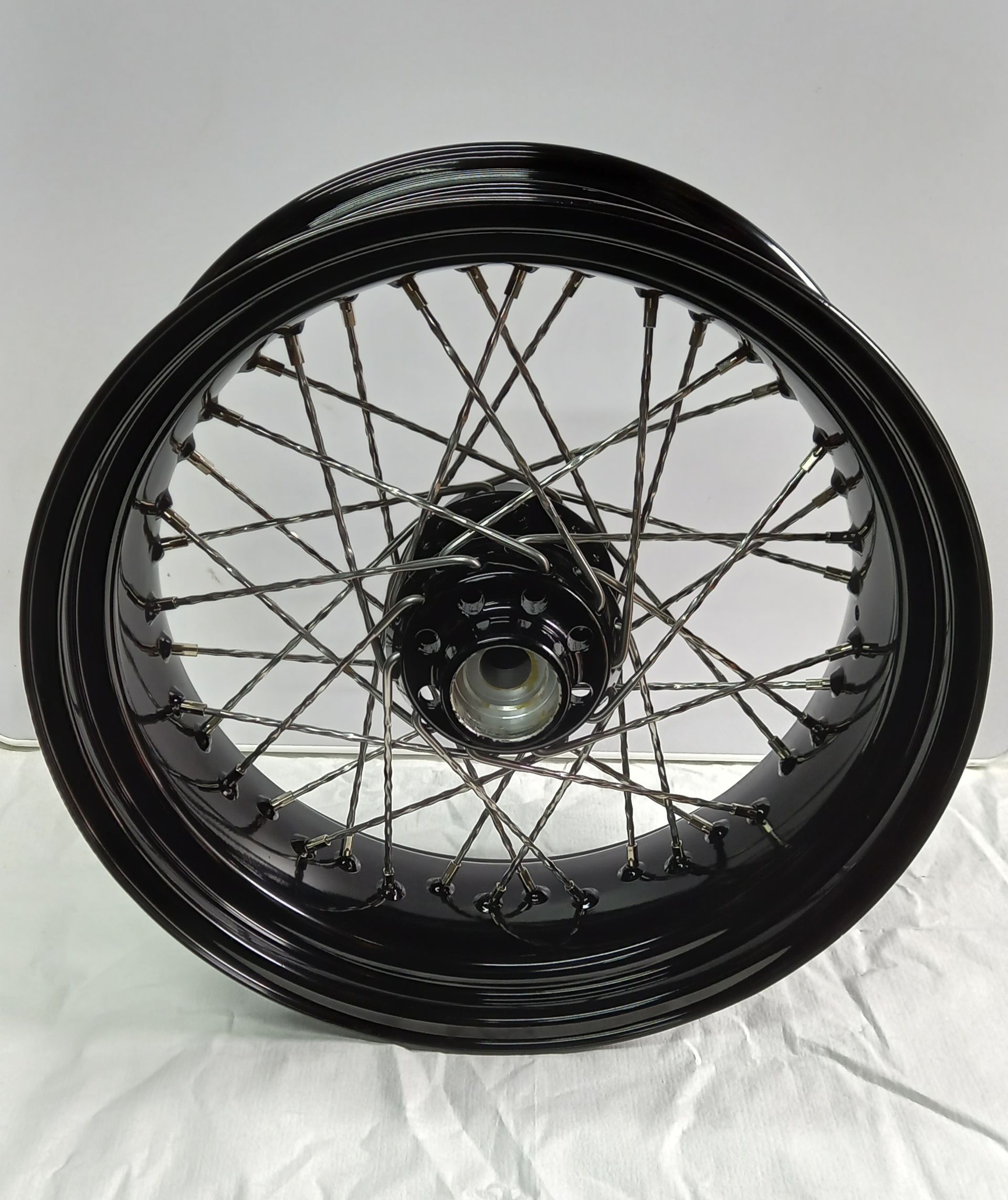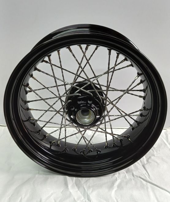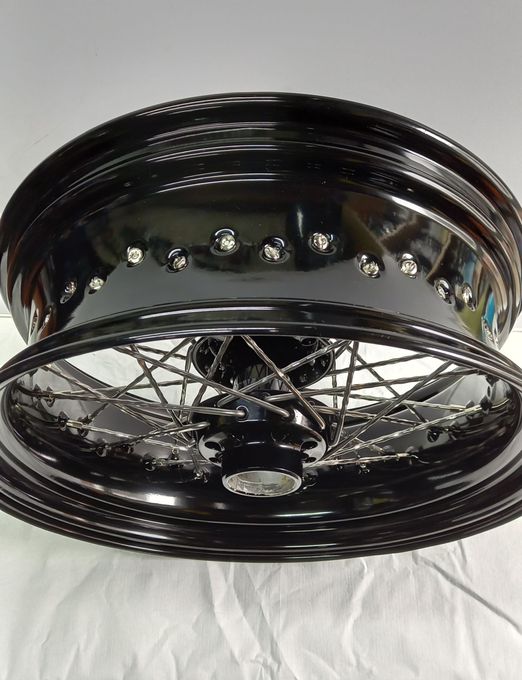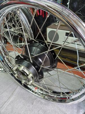 Slightly different Honda wheels with black rims, half polished Hubs, Stainless spokes with Brass nipples.