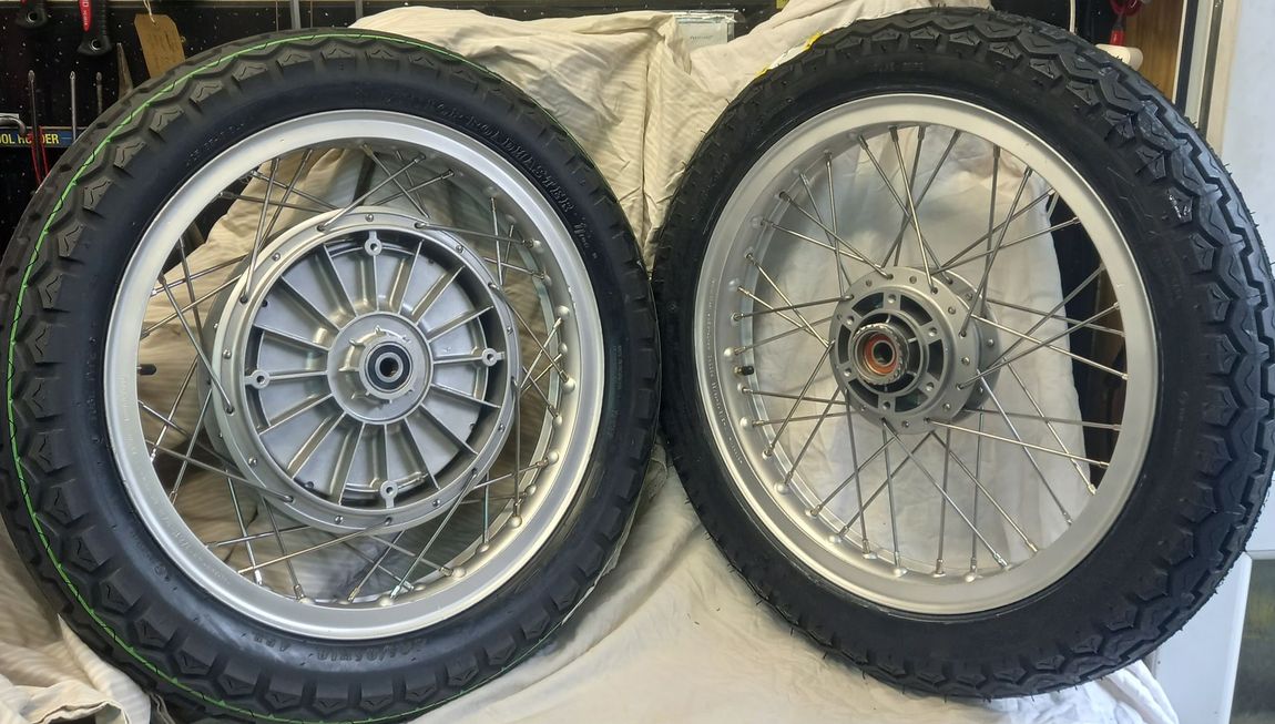 Pair of 1970s Laverda wheels fully refurbished using the original rims and hubs.