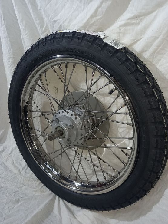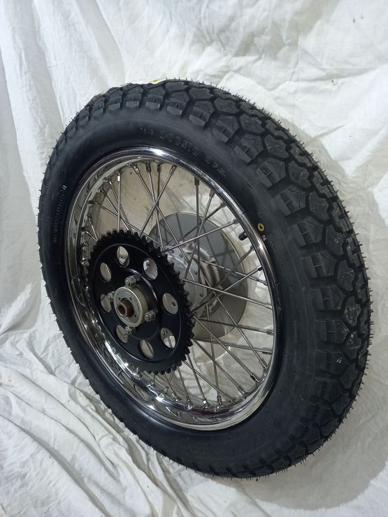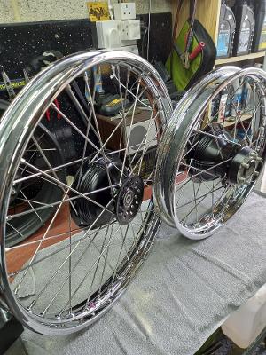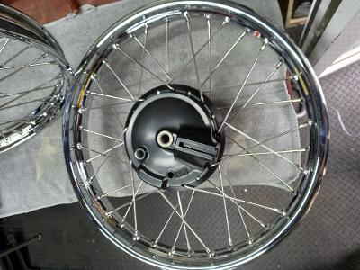 Pair of Yamaha DT 175 wheels. New chrome rims, polished stainless spokes and some excellent powder coating from Steve@TPCS Ltd.