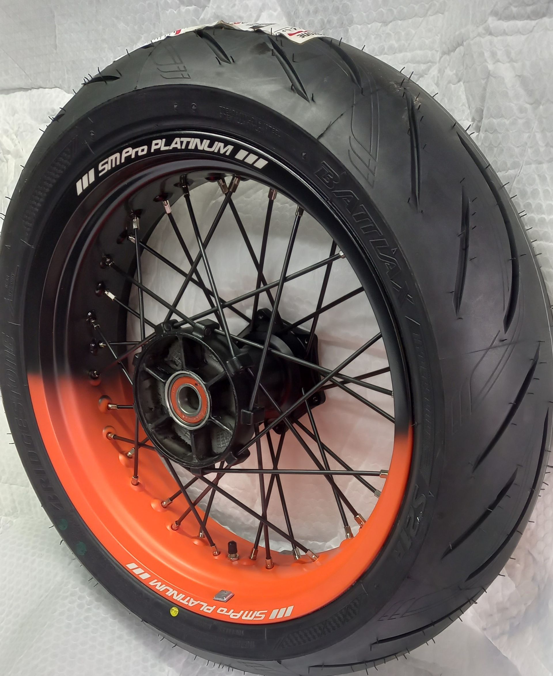 Multi coloured Rim for this KTM wheel along with black anodised Stainless Steel spokes